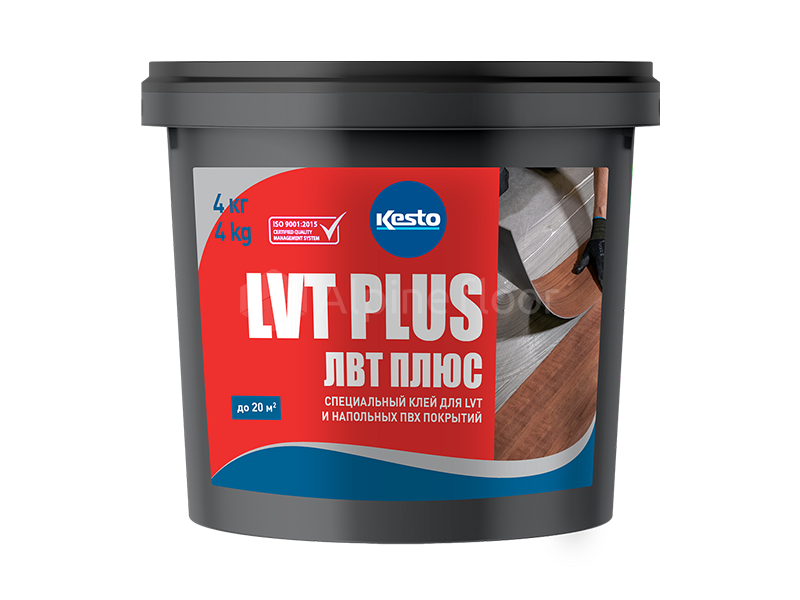Водорастворимый клей Клей Kesto LVT Plus на акриловой основе для приклеивания напольных и стеновых покрытий и плиток из ПВХ, рулонных ПВХ покрытий, резины, текстиля, а также толстых (более 0,6 мм) стеновых покрытий на впитывающие и невпитывающие основания в сухих и влажных помещениях. Благодаря повышенной липкости и длительному времени для монтажа, а также высокой окончательной прочности и твердости клеевого шва клей особенно хорошо подходит для плитки LVT. Применяется также в системах полов с подогревом.