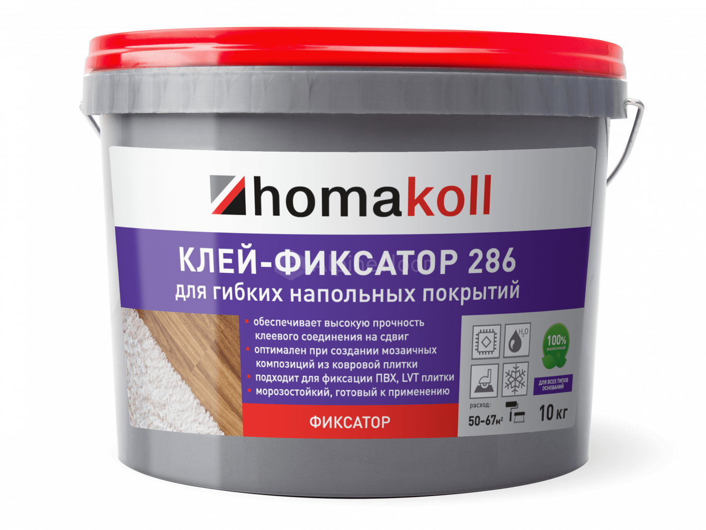 Клей Homakoll 286 предназначен для фиксации декоративных или защитных ковриков на поверхности пола (например, на линолеуме, ламинированном паркете, керамической плитке) внутри помещений. Рекомендуется для приклеивания самых разнообразных гибких напольных покрытий (виниловых и ковровых напольных плиток, рулонных ковролинов на вспененной или вторичной подоснове, текстильных покрытий на войлочной основе) к различным основаниям. Позволяет легко заменять покрытия без повреждения основания.